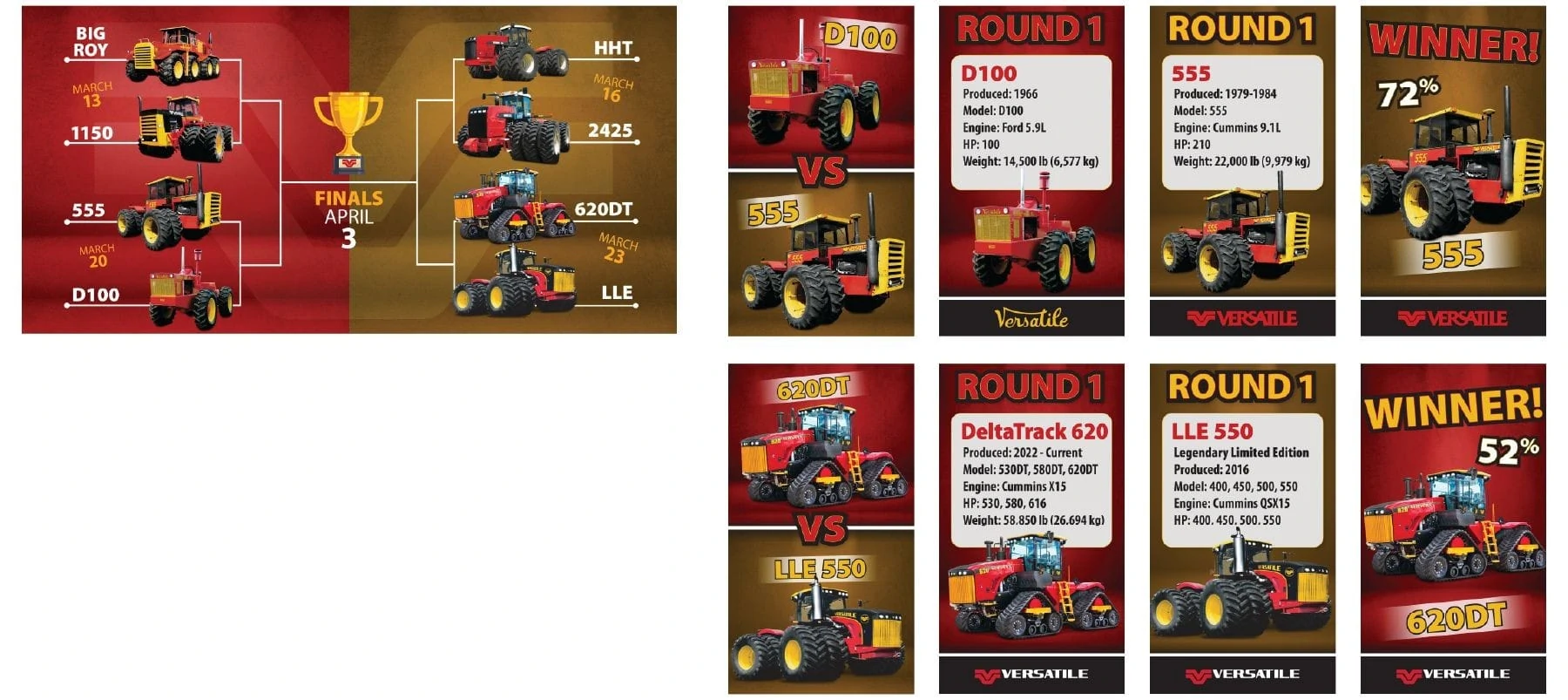 Tractor Bracket - A campaign ran during March Madness, we ran a tractor bracket over three weeks having our followers choose their favourite Versatile Tractor. In the end 75+ posts and stories were created for this campaign.